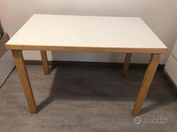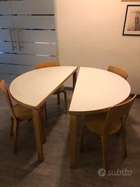 Tavoli e sedie Alvar Aalto per Artek. Originali fine anni ‘60/inizio anni ‘70, in betulla. I tavoli hanno i ripiani bianchi.