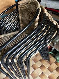 Vendo 8 sedie impagliate da esterno usate, 4 tavoli rattan usati, 4 sgabelli plastica nera. Non vendo separatamente. Prezzo non trattabile. Solo ritiro
