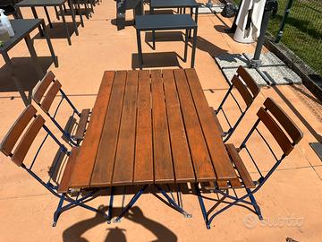 Vendo tavoli diverse misure (13pezzi) e sedie (60 pezzi) per esterno in legno. Prezzo: 80 € tavoli e 25€ sedie Qualche tavolo è da levigare.