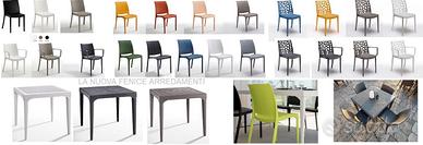Set contract componibile con tavolo 80x80 in polipropilene + 4 sedie o poltrone a scelta.
