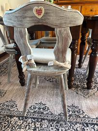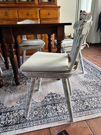 Vendo tre tavolo in legno misura 80x80 altezza 78 e n. 9 sedie come da foto. Il tutto quasi nuovo, in stile provenza. Euro 60 a tavolo e 20€ a sedia.