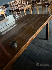 Tavoli e sedie in legno, tavoli a 4/6/8 posti con sedie(95) in legno, tavoli alti con sgabelli.