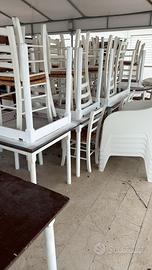 Tavoli quadrati 80x80 10pezzi (20€ l’uno) Tavoli rettangolari 120x80 6 pezzi (25€ l’uno) Sedie in legno 16 pezzi (15€ l’una)