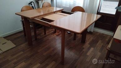Gli arredi in foto sono in legno massello. Il tavolo è espandibile e può ospitare comodamente 6 persone. Le sedie sono 4, dello stesso materiale, pensate per l’uso insieme al tavolo. Misure: tavolo (chiuso): 110x110 tavolo (aperto): 150x150 sedie: 45x45 necessario il ritiro a carico dell’acquirente. per ulteriori informazioni sono disponibile in chat privata. PREZZO TRATTABILE.