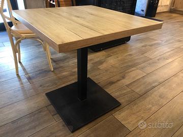Vendesi in stock 5 tavoli ristorante/bar 75x70 nuovi di costruzione italiana in legno impellicciato con gamba centrale e 12 sedie con seduta in similpelle .(valore oggi a nuovo 3300 euro).