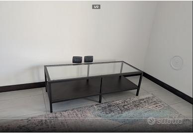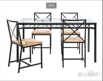 Vendo gli arredi sotto descritti, preferibilmente in blocco: IKEA VITTSJÖ:Tavolino rotondo nero/vetro/metellao (diametro 75cm). IKEA VITTSJÖ: Tavolo per laptop (scrittoio) IKEA VITTSJÖ nero/vetro/metallo (100cmx36cmx74cm). IKEA VITTSJÖ:Tavolino basso salotto nero/vetro/metallo (100x40x31cm) IKEA GRANAS: Tavolo in ferro, con portaoggetti e piano in vetro da 50mm, integro senza scheggiature (146x78x76) + 4 Sedie impagliate nero/metallo.