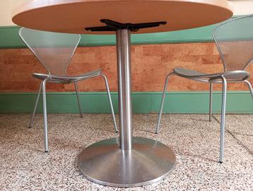 Tavoli con ripiano in MDF verniciato e base con supporto tondo in acciaio satinato, resistenti e molto stabili.