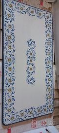 Vendesi tavoli in pietra lavica decorati a mano, 1 dimensioni 160x80 cm. e l'altro 80x80 cm. con relativi piedistalli, con 6 sedie a seduta quadra e 2 con seduta tonda, tutto in acciaio zincato verniciati a polveri, mai utilizzati causa problemi di spazio, prezzo non trattabile!
