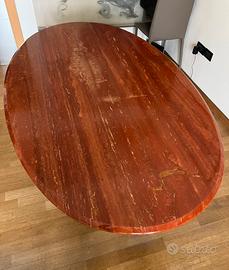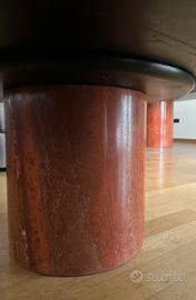 Vendo due eleganti tavoli in travertino rosso con basamento, entrambi in condizioni eccellenti, praticamente come nuovi.