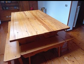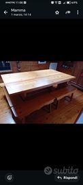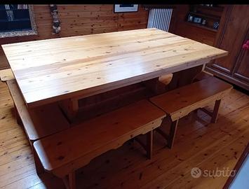 Vendo coppia di tavoli da interno, in ottime condizioni. Un tavolo è lungo 2 metri e largo 59 cm. Affiancandoli come in foto per il lato della larghezza diventa profondo 118 cm. Le panche sono 6, lunghe 1 metro e larghe 28 cm. Si vende in blocco unico a 250 euro