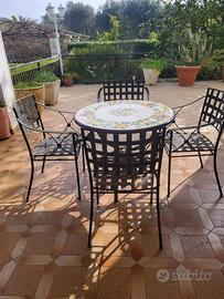 tavolo maiolica con 4 sedie in ferro e tavolino maiolica