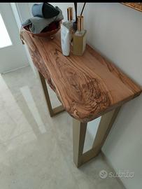 Realizzazione di qualsiasi elemento di arredo con legno pregiati come mensole lavabo,mensole, tavoli, tavolini, top, scrivania, librerie, mobili bagno, mobili TV, parete attrezzata e molto altro con possibilità di personalizzazione con inserto in resina per creare elementi d arredo completamente personalizzati e unici per maggiori informazioni scrivetemi