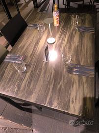 2 tavoli 80x80 altezza 102. Struttura in ferro e base in legno.