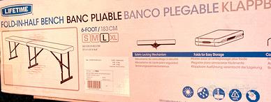 Vendo, causa inutilizzo, 2 tavoli pieghevoli da mt. 1.80 x 0.70 aperto con 2 panche , anch’esse pieghevoli e lunghe come i tavoli.
