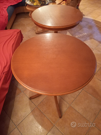 Vendo 2 tavoli rotondi in legno, diametro cm.70, altezza cm. 71, anche singolarmente, come da foto. Non spedisco.