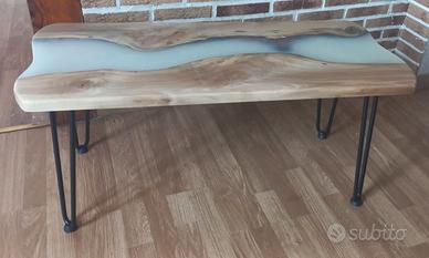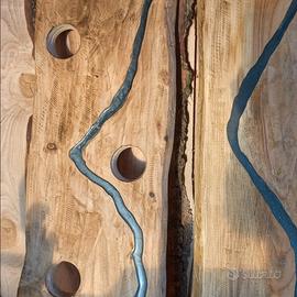 Realizzazione di qualsiasi elemento d arredo su misura con legno pregiati come mensole lavabo, mensole, tavoli, tavolini, scale, top, scrivania, mobili bagno, mobili TV e molto altro con possibilità di personalizzazione con inserto in resina per interno e esterno per creare un arredo completamente unico e personalizzato per maggiori informazioni resto a disposizione