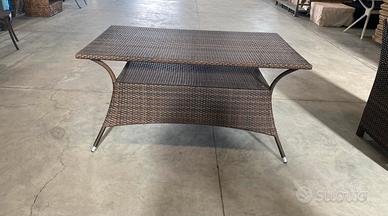 Disponibili ultimi pezzi tavolo, sedie e poltrone come in foto, tavolo e poltrona in polyrattan, sedia polyrattan con piedi in legno.