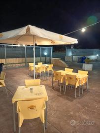 Causa chiusura attività vendo 8 tavolini con rispettive 32 sedie e 2 ombrelloni con relativa base in pietra. Possibilità di acquisto NON in blocco come da annuncio. Prodotti usati ma ben conservati.