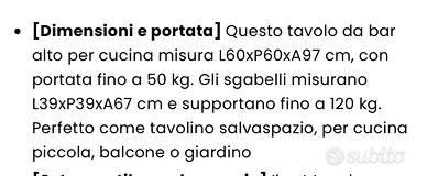 Tavoli, sedie, sgabelli per attivita’