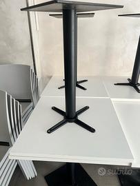 rimasti 10 tavoli e 40 sedie ripiano bianco non tutti perfetti piede in ferro colore nero molto pesanti sedie grigio plastica di ottima qualità.
