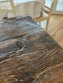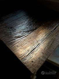 Realizzato interamente a mano esclusivamente su misura con antico rovere patina madre vissuta ottenuto dal recupero pareti vecchi chalet massicci spettacolari . Inserti a richiesta anch essi realizzati a mano a scalpellino in legno Fossile datato 5000 anni.