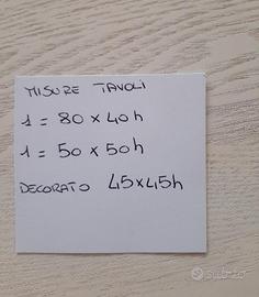tavolo bassi rotondi di 3 altezze diverse in una delle foto sono specificate le misure .....il prezzo si riferisce ai 2 uguali mentre quello decorato è 25 .....