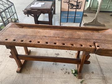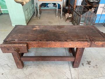Vendesi splendidi tavoli in legno massiccio vintage, autentici tavoli da falegname che racchiudono tutto il fascino del lavoro artigianale di un tempo. Si tratta di pezzi originali, solidi e durevoli, realizzati con legni di alta qualità e caratterizzati da una struttura robustissima, pensata per resistere negli anni e mantenere intatta la propria bellezza. Ogni tavolo presenta dettagli unici, con venature naturali, segni del tempo e lavorazioni che raccontano una storia vera, rendendoli elementi d’arredo dal grande valore estetico e funzionale. Disponibili modelli con morsa in legno perfettamente integrata e uno con morsa in ferro, elementi autentici che donano ulteriore carattere e rendono questi tavoli ancora più particolari e ricercati. La presenza delle morse originali li rende non solo affascinanti dal punto di vista estetico, ma anche versatili e funzionali, ideali per diversi utilizzi. Perfetti come tavoli per locali, pub, ristoranti o bistrot che desiderano distinguersi con uno stile caldo e accogliente, sono altrettanto adatti come banconi da negozio per attività che vogliono trasmettere autenticità e personalità. Si prestano inoltre benissimo come arredi per la casa, diventando protagonisti in cucine, taverne, loft o ambienti in stile rustico, industriale o contemporaneo, dove il contrasto tra antico e moderno crea un effetto di grande impatto. Questi tavoli non sono semplici mobili, ma veri pezzi di storia, capaci di trasformare qualsiasi spazio in un ambiente unico e ricco di atmosfera. La loro solidità li rende ideali anche per un utilizzo quotidiano intensivo, mantenendo sempre stabilità e affidabilità.