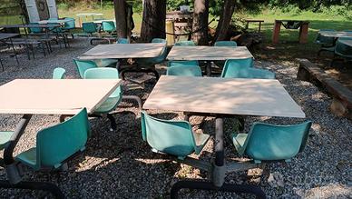 Vendo n. 12 set di tavoli vintage Bellini milano. Struttura massiccia in ferro e alluminio con 4 sedie incorporate.