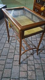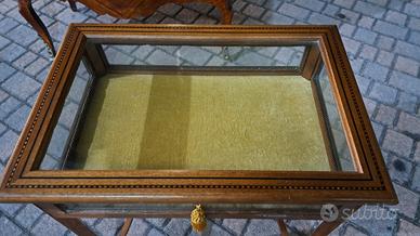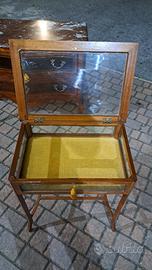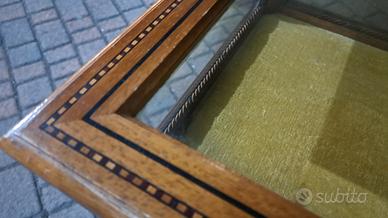 tavolinetto bacheca vintage anni 70 in noce piano filettato interno tappezzato in tessuto giallo oro chiave originale ottime condizioni misura 60x42 altezza 72...M&P Antichità siamo un negozio specializzato in antiquariato vintage e shabby vendita al dettaglio e all ingrosso scarichi settimanali oltre 500 articoli in negozio, abbiamo una vasta scelta di como comodini tolette armadi letti vetrine vetrinette credenze servanti angoliere librerie tavoli tavolinetti sedie poltrone poltroncine divani lampade lampadari tappeti scrivanie scrittoi secretere ribaltine consolle quadri cornici specchi cassapanche bauli oggettistica varia idee regalo e molto altro ci troviamo a Roma zona Castelverde via Massa San giuliano 26b POSSIBILITÀ DI CONSEGNA E SPEDIZIONE IN TUTTA ITALIA PER INFO LUCA
