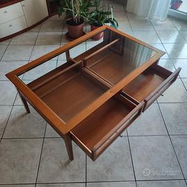 Tavolinetto basso in vetro con cassetti