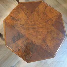 Particolare tavolinetto ottagonale in legno di noce, stile Luigi XIII di epoca ottocentesca.