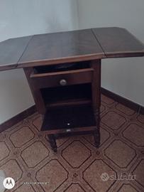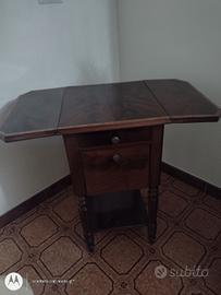 tavolino dei primi del novecento in radica di noce. estensibile con ali laterali. cassettino ,con vano a ribalta.