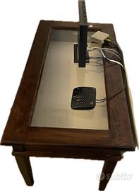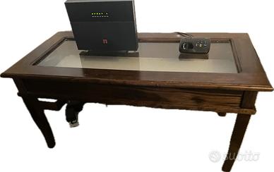 Vendo elegante tavolinetto in legno massello con piano in vetro e vano interno espositivo.