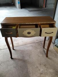 tavolino stile anni 60, con tre cassettini, misure alto 80 largo 80 profondo 30
