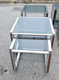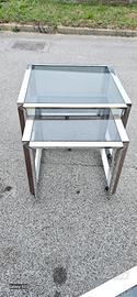 tavolini acciaio e legno anni 70
