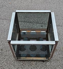 set tavolini e porta bottiglie vetro fume' acciaio e legno ritiro proprio solo in blocco