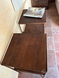 Vendo 2 tavolini/comodini ferro con ripiani in legno massello