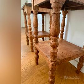 Oggi vi presentiamo due graziosi tavolini antichi in noce con gambe a rocchetto, risalenti inizi del novecento.