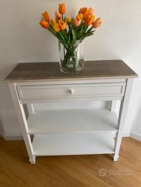 2) consolle in legno bianco e base rovere invecchiato (L75xH80xP28);
