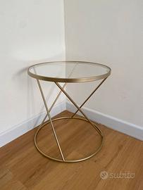 3) tavolino tondo maison du monde in ferro dorato e base in vetro (L38xH40xP38)