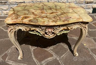 Tavolino da fumo in stile barocco La base é in legno scolpito e dipinto Il piano in marmo Misure lunghezza 92 larghezza 74 altezza 52 Non faccio spedizione l’articolo é visionabile prima dell’acquisto Contattatemi per le info Prezzo trattabile