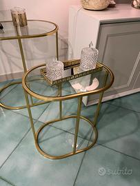 MELENA - Tavolini da salotto in vetro e metallo dorato (x2). Lasciati ispirare dai tavolini da salotto in vetro e metallo dorato MELENA. Con le loro gambe affusolate in metallo dorato, questi tavolini da salotto trasformeranno l'ambiente rendendolo subito chic e sofisticato. Dimensioni e peso