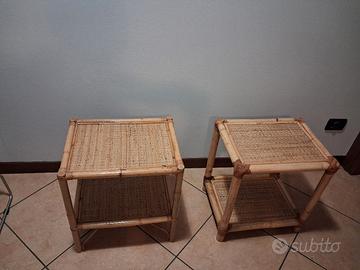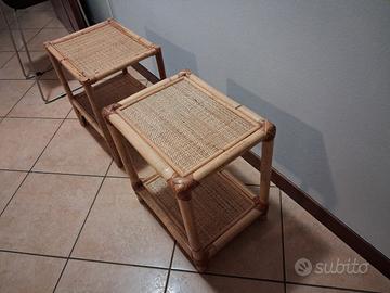 Tavolini in vimini e bambu vintage vicini al nuovo