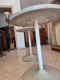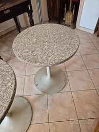 Questi tavoli presentano un design classico in stile modernariato, caratterizzato da un piano circolare in granito e una robusta base a piedistallo. Dalle immagini e dalle informazioni sui prodotti simili, si possono identificare le seguenti caratteristiche: Materiali: Il piano è realizzato in granito naturale, apprezzato per la sua resistenza a calore, urti e graffi. La struttura portante consiste solitamente in una colonna in acciaio o ferro con una base circolare piatta o leggermente svasata. Design: Il modello è riconducibile al design postmoderno degli anni '80. Un esempio iconico molto simile è il tavolo "625" progettato da Peter Noever per Zanotta, che presenta un piano in granito e una base in metallo verniciato. Utilizzo: Grazie alla durabilità dei materiali, questi tavoli sono versatili e adatti sia come tavolini da caffè per interni che come arredi per bar o giardini esterni. I prezzi per articoli vintage simili in buone condizioni possono variare significativamente: si trovano inserzioni di mercato locale a circa 80 € l'uno, mentre pezzi di design firmati possono raggiungere cifre molto superiori su piattaforme specializzate. Misure in cm Diametro 60 Altezza 71
