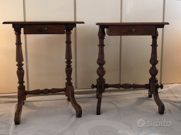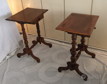 Lotto di 2 tavolini svuotatasche Vide-poche in noce fine 800.
