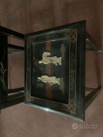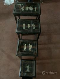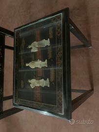 Disponibile ora solo tre pregiati tavolini in legno originali Giapponesi con raffigurazioni a rilievo in madreperla