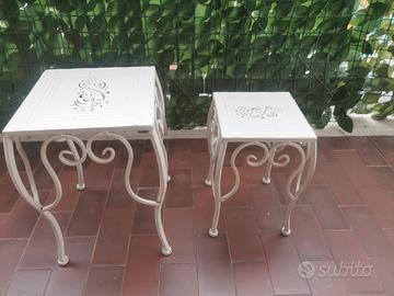 In vendita tavolini porta piante bianchi in ferro battuto .prezzo 50 euro entrambi. Possibile vendita anche singolarmente
