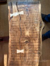 Vendo come da foto allegate due tavolini rustici con piano in rovere massiccio spessore 6cm e gambe in duglas. Dimensioni tavolino grande 100x35 h 75 cm con traversa inferiore fatta con un vecchio remo da barca.