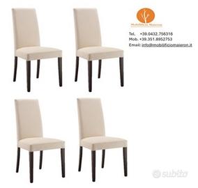 - N. 04 Sedie In Legno di Faggio Con Gambe Legno Wengè - Seduta e Schienale Imbottite e Rivestite Ecopelle Colore Beige. (disponibile in altri colori: Bianco, Tortora/Taupè, Nero).