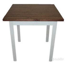 - N.1 Tavolo 4 Gambe Quadrate in Legno massello Di faggio colore Bianco con Piano Legno Massello colore noce 60x60x2.5 (Disponibili altre dimensioni e colori)